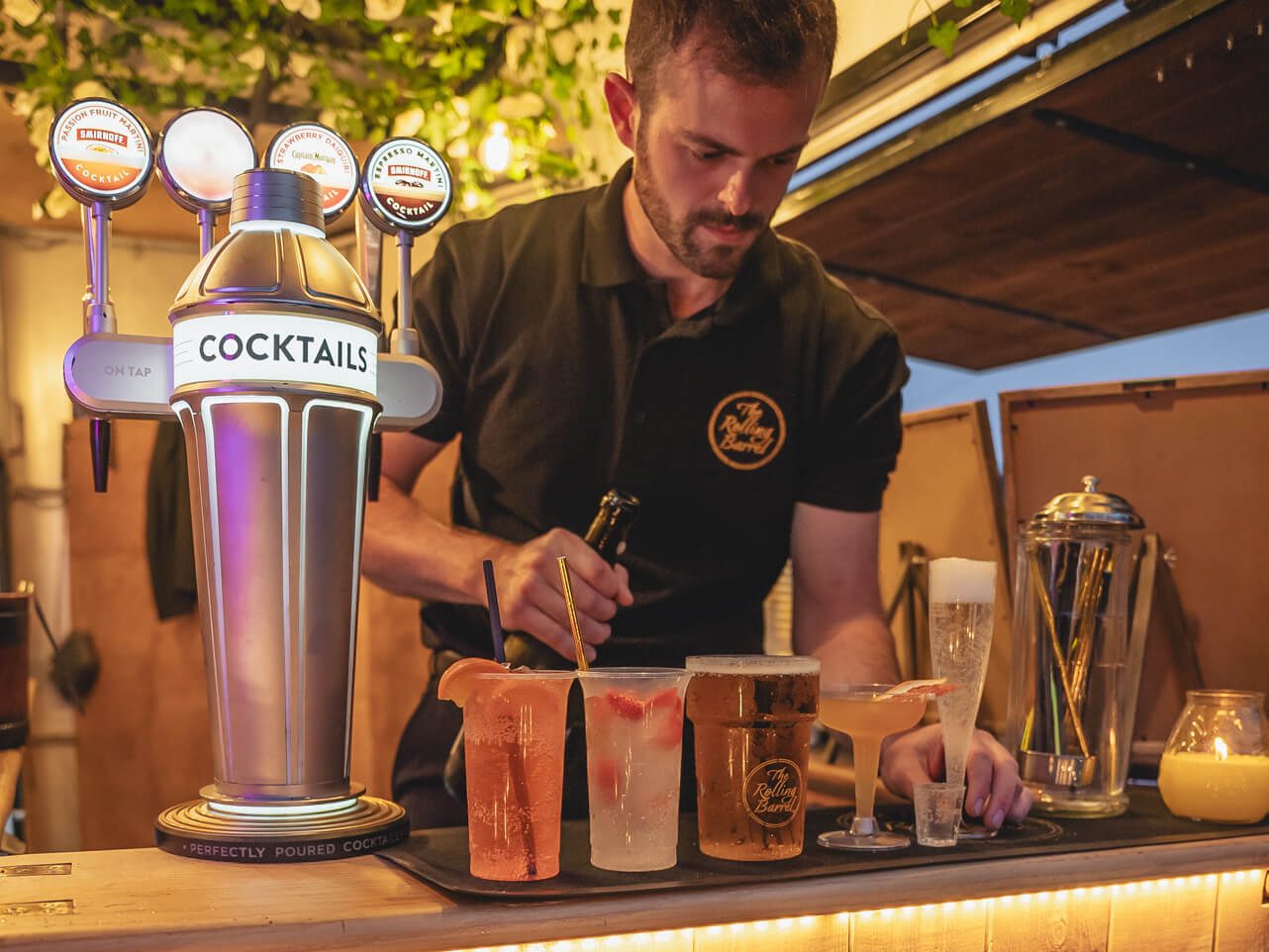 Our beautifully converted horsebox bar is a real showpiece for any event, day or night.